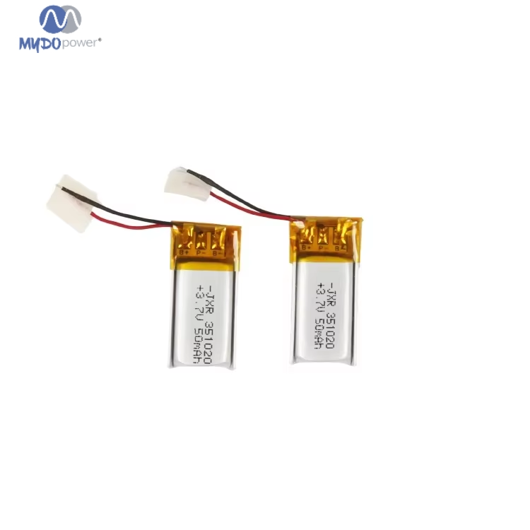 Batería de polímero de litio Tamaño de la batería: 503035 530 mAh Aplicación: Electrónica de consumo Vida útil: 500 ciclos Materiales del cátodo: Otros Modelo: 503035 Temperatura de funcionamiento (℃): 0-45 °C Marca: Mydo Tipo de batería: Estado sólido Peso: 1 g Origen: China