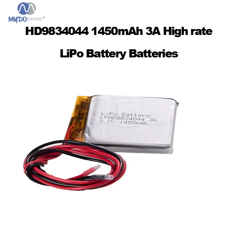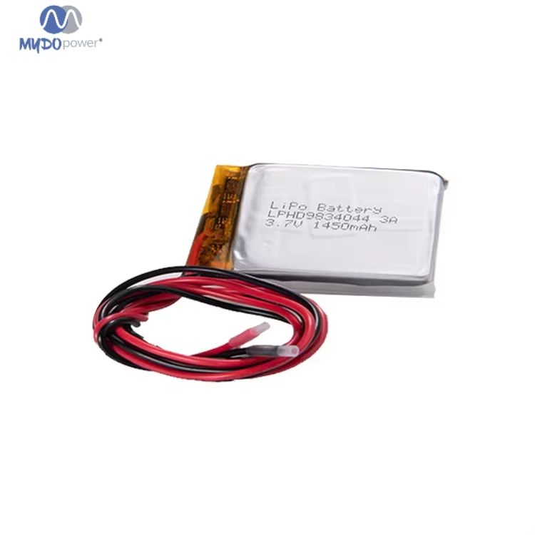 Batería de polímero de litio Tamaño de la batería: 9834044, 1450 mAh Aplicación: Electrónica de consumo Vida útil: 500 ciclos Materiales del cátodo: Otros Modelo: 9834044 Temperatura de funcionamiento (°C): -20 - 60 °C Marca: Mydo Tipo de batería: Estado sólido Peso: 9 g Origen: China