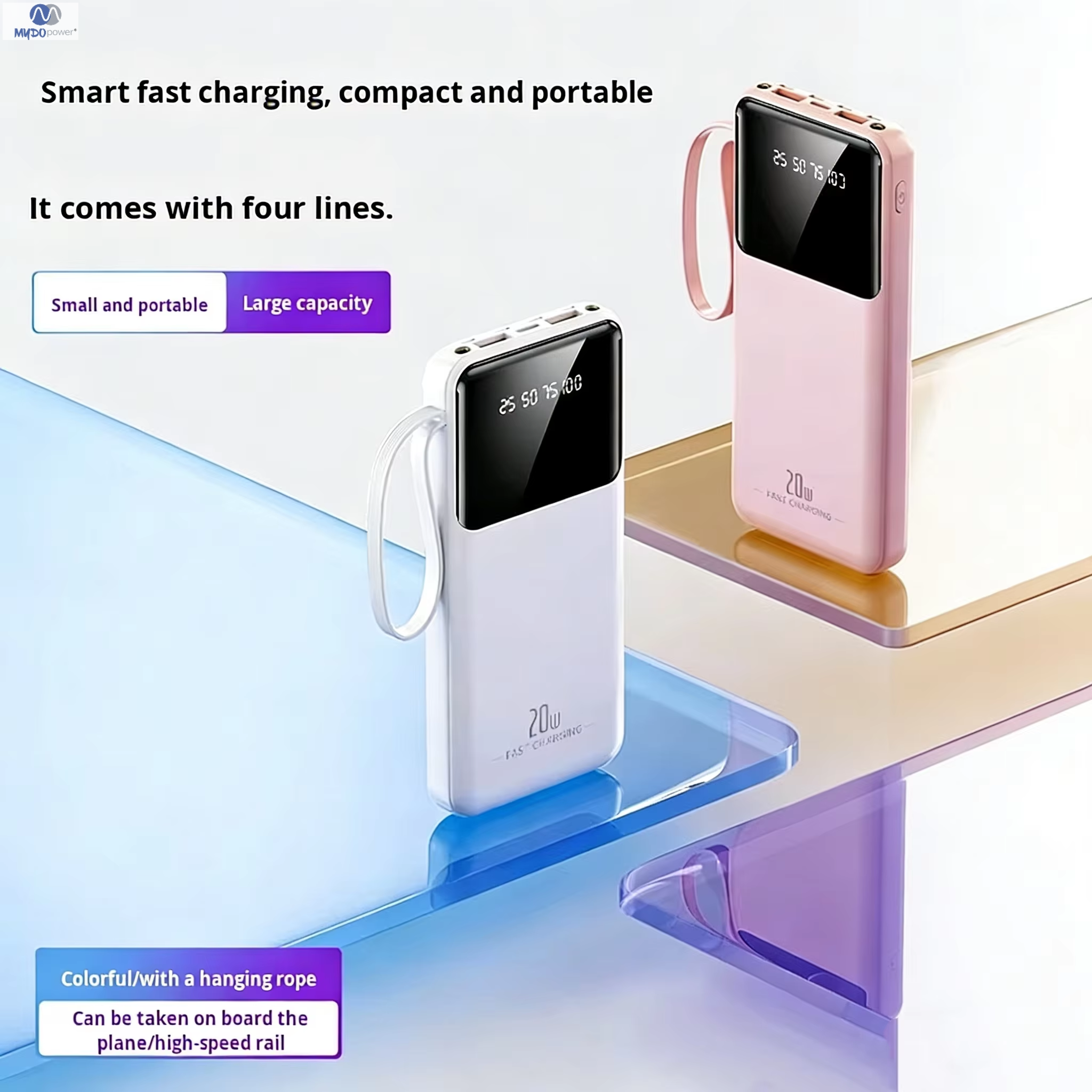 Funciones: Compacto y portátil, con linterna LED, salida multipuerto U, pantalla digital de batería, cabezal de carga para power bank 2 en 1