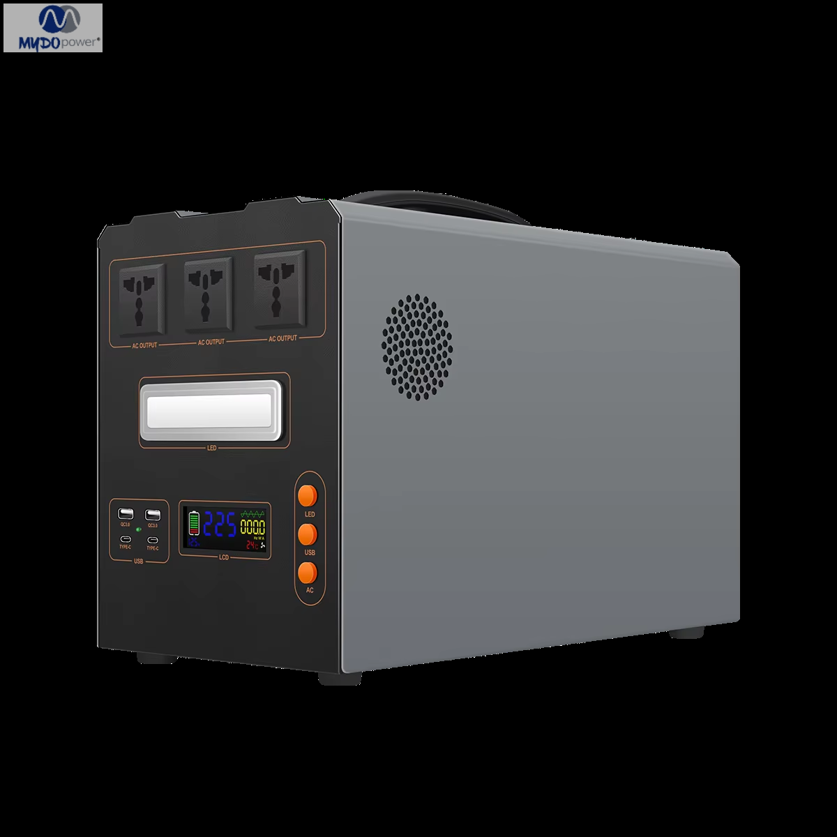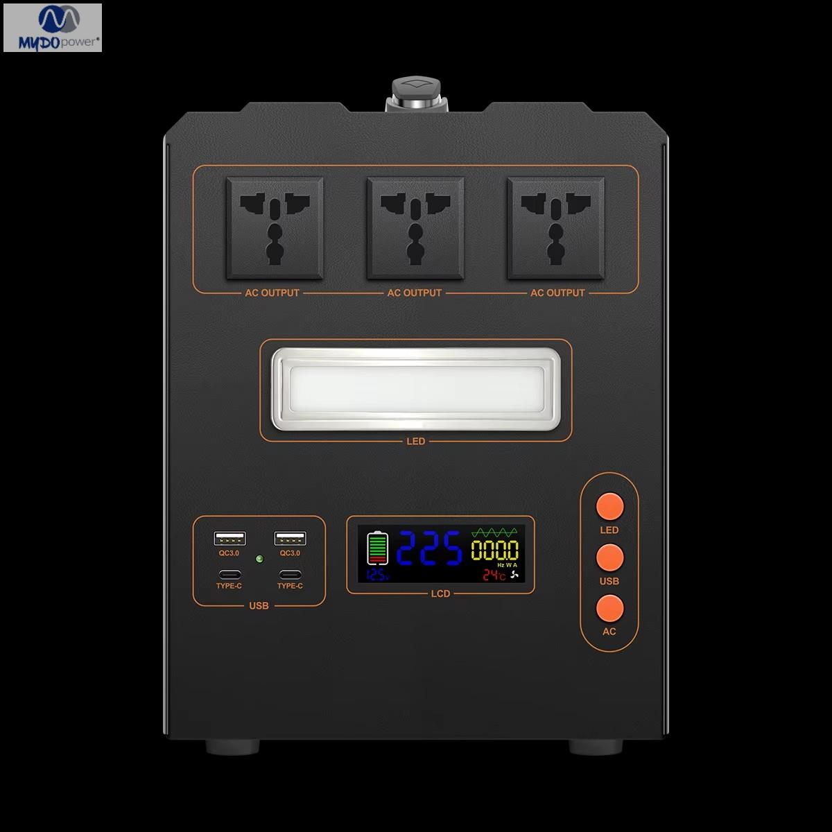 Nombre del producto: Estación de energía portátil Aplicación: Energía de respaldo de emergencia Certificación: FCC/CE/ROHS Garantía: 1 año Protección: Sobrecarga, sobretensión, sobretemperatura, subtensión OEM/ODM: Sí (Aceptado) Iluminación LED: Iluminación + SOS (Luz frontal y trasera) Inversor: Inversor de onda sinusoidal pura Potencia: 1000 W Dimensiones: 400 x 210 x 275 mm