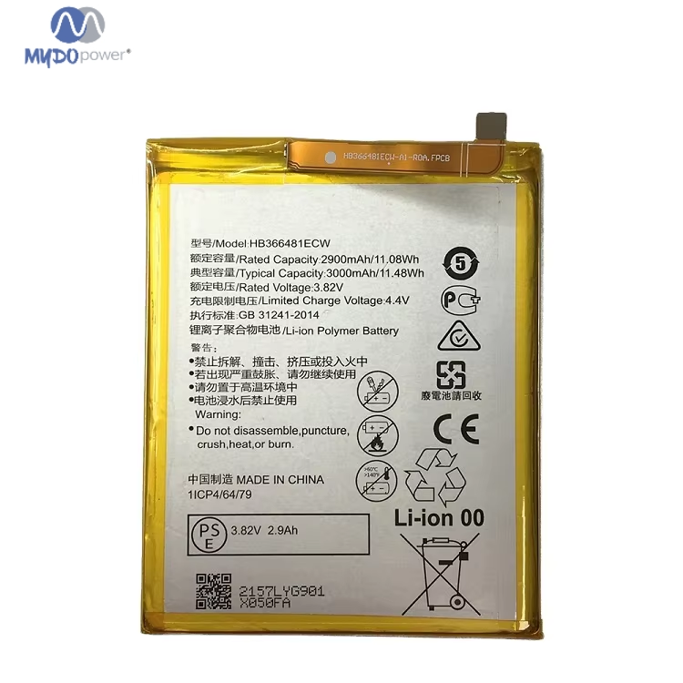 Modelo: HB366481ECW Voltaje: 3,8 V Capacidad: 4100 mAh Garantía: 12 meses OEM y ODM: Aceptados Formas de pago: Western Union, transferencia bancaria Certificación: CE Cantidad mínima de pedido: 50 unidades Peso: 0,08 kg